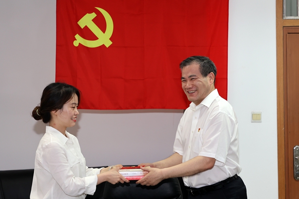 会上,徐孝民带领与会正式党员重温入党誓词。他还向徐川博赠送了《中国共产党章程》《中国共产党简史》《习近平与大学生朋友们》等书籍。