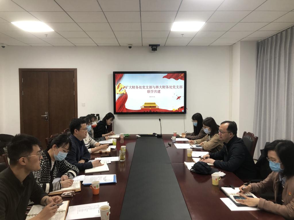 为全面落实学习贯彻习近平新时代中国特色社会主义思想主题教育"学思想、强党性、重实践、建新功"的总要求,丰富主题教育形式,推动主题教育取得实效,2023年4月11日财务处处长陈平泽带队财务处党支部支委成员赴北京林业大学财务处,开展联学共建活动。